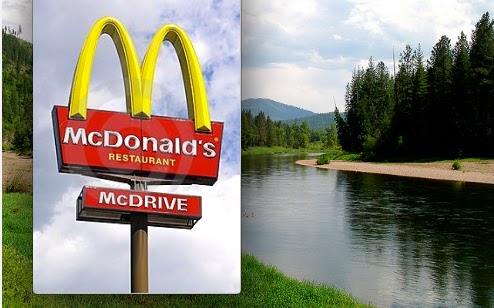 The autumn colors, that glinting river, that lead-colored cloud pointing down like a rounded arrow at that half-remodled McDonald's standing above I-90 like a castle. (Tenth of December by George Saunders)